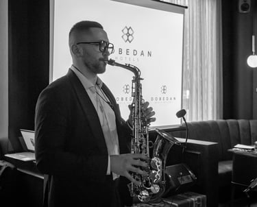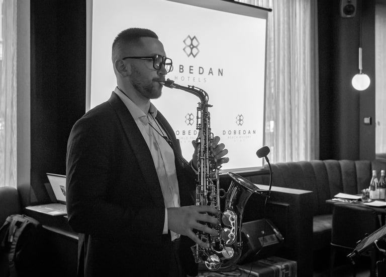 Saksofonas gali tapti subtiliu stiliaus akcentu jūsų įmonės renginyje. Foninė muzika kuria elegantišką, malonią atmosferą, leidžia svečiams atsipalaiduoti ir mėgautis pokalbiais, o energingesni kūriniai įkvepia šokiams ar netgi smagiai interakcijai tarp kolegų. Gyva muzika padeda renginiui tapti ne tik oficialiu susibūrimu, bet ir nepamirštama patirtimi, paliekančia teigiamą įspūdį.