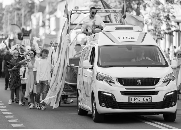 Saksofonas gali būti ne tik klasikinio renginio akcentu – jis puikiai tinka ir nestandartinėms, kūrybiškoms idėjoms. Vienas įsimintiniausių mano pasirodymų įvyko Lietuvos transporto saugos administracijos eisenoje per Jūros šventę: grojau ant važiuojančio laivo, kurį tempė automobilis!